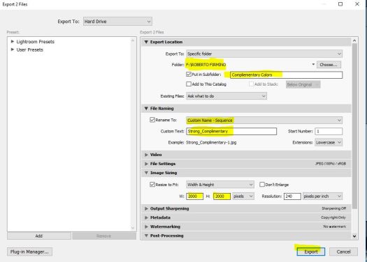 Step 3: Under File Naming, select Custom Name- Sequence. Put your last name and the word complementary.